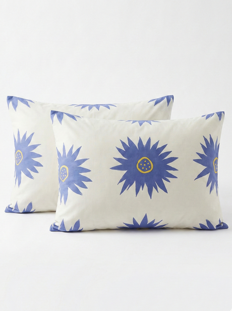 Juego de sábanas 144 hilos estampado flores / azul unicolor.