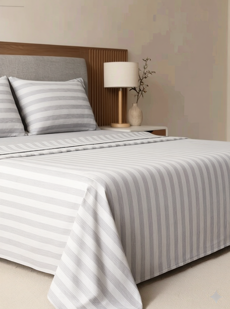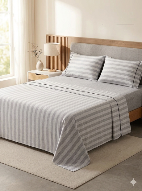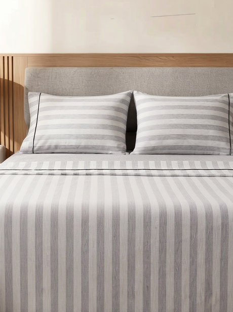 Juego de Sábanas completo Microfibra Blanco - Liso x Raya