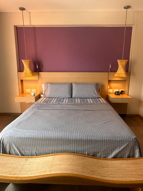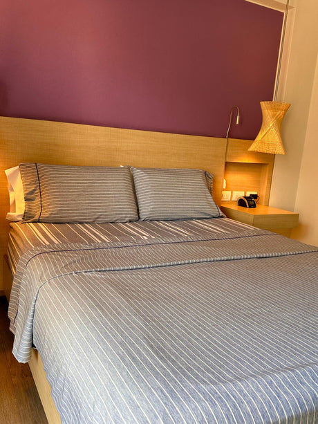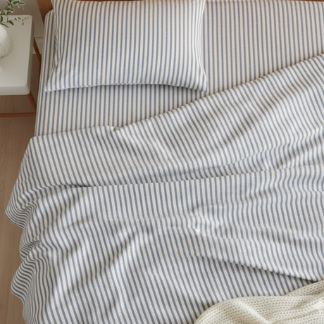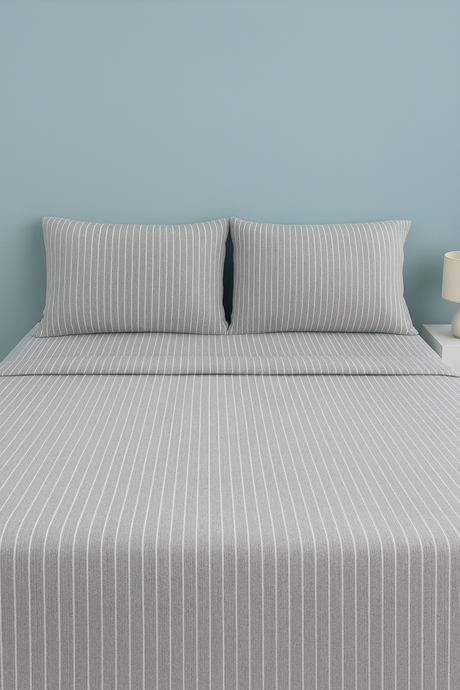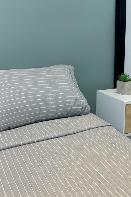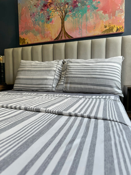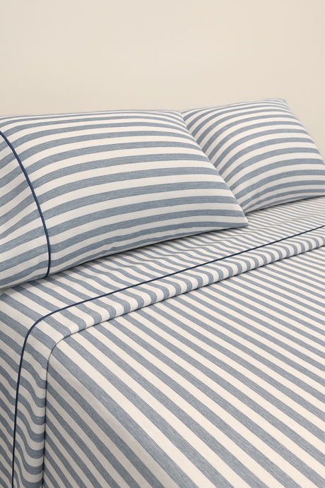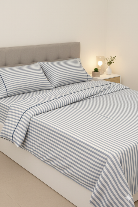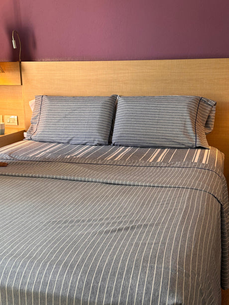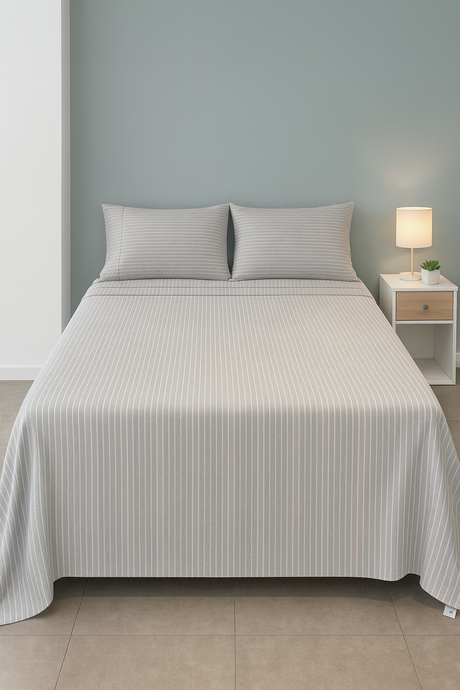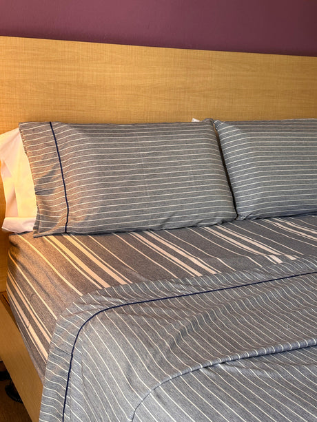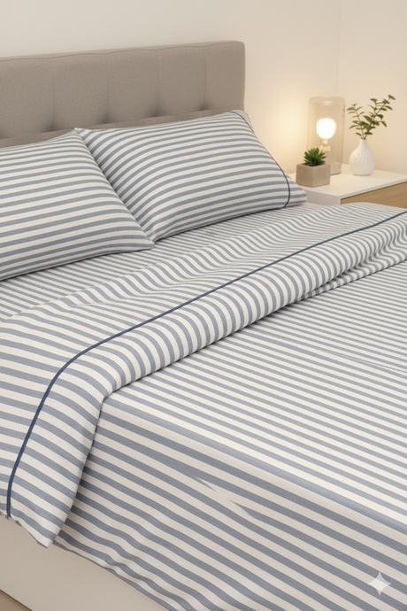 Juego de Sábanas TRU – Cationicas - Raya Azul Grisáceo