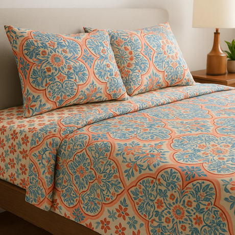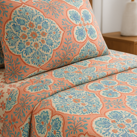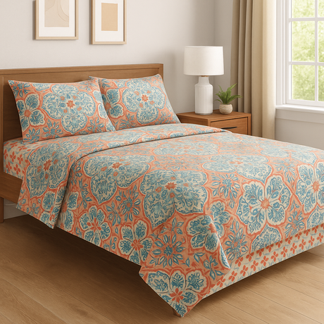 Juego de Sábanas TRU – Microfibra Estampada Naranja Sevilla 80 GRS