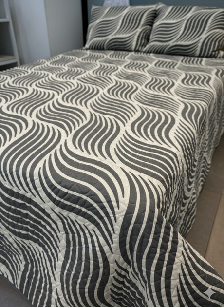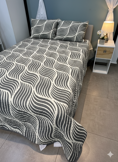 Juego de sábanas 144 hilos estampado Azul Grisaceo