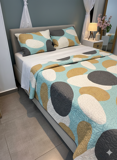 Cubrelecho Tru estampado circulos morazul - Doble faz