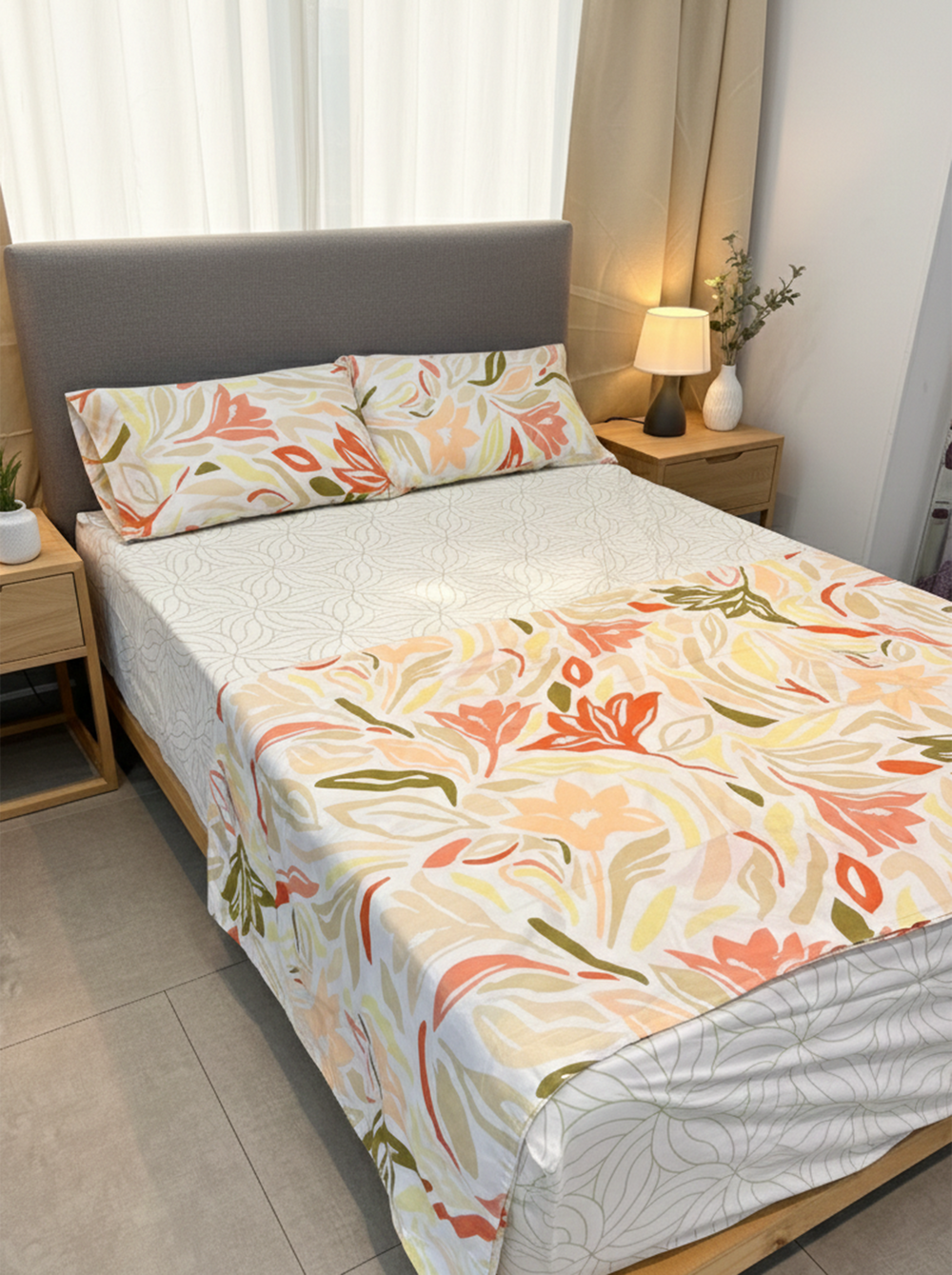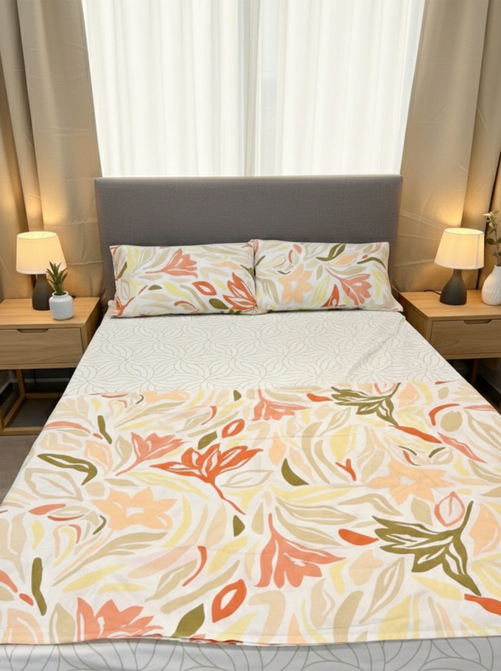 Juego de sábanas 144 hilos estampado flores rosas