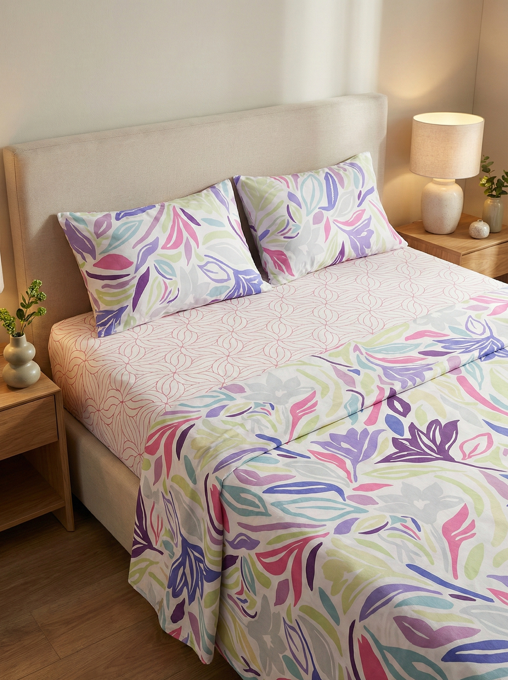 Juego de sábanas 144 hilos estampado naranja