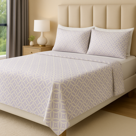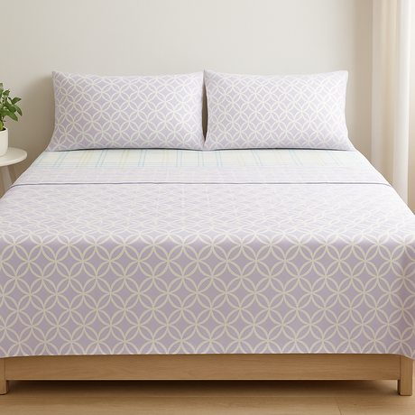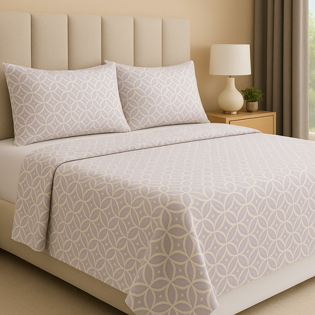 Juego de sábana 144 hilos estampado Círculo Vital Blanco